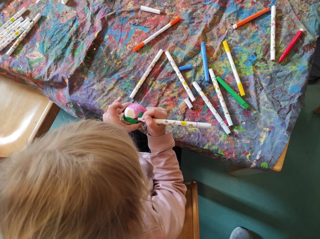Anfang der Woche haben sich zwei Mütter mit den Kindern gemeinsam um die Gestaltung der Eier gekümmert.
